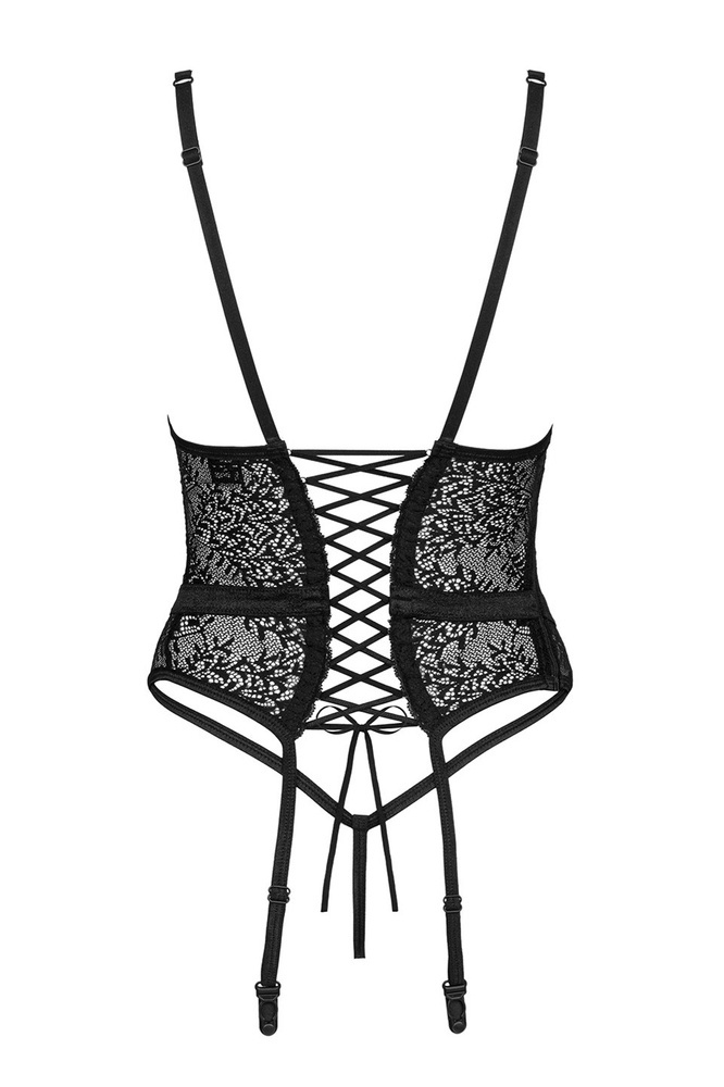 Zmysłowy gorset, który z pewnością trafi w Twoje gusta! Seksowny fason podkreśla sylwetkę, a kuszące paski i wiązanie na plecach są fantastyczną zachętą do rozkosznych chwil z ukochaną osobą.