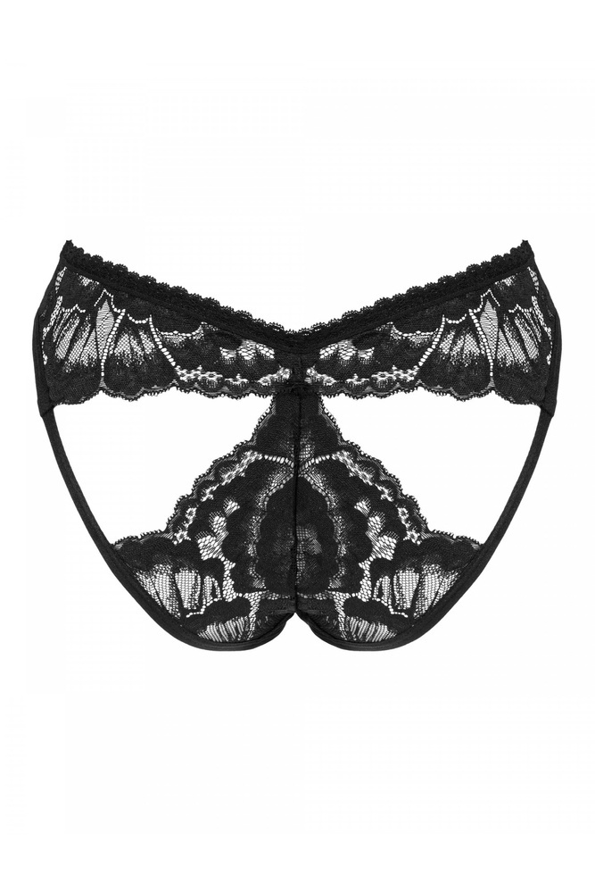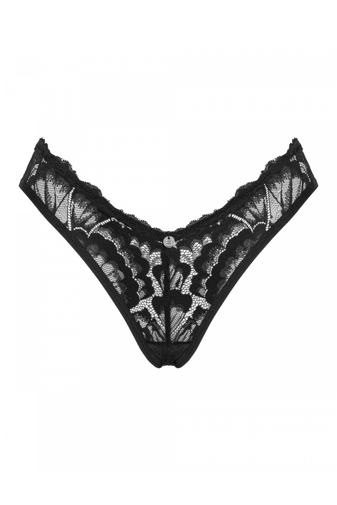 Seksowne figi wykonane z elastycznego materiału. Biżuteryjna zawieszka na przodzie dodaje elegancji. Zmysłowe wycięcia na pośladkach – zwracają uwagę i pięknie podkreślają figurę.
