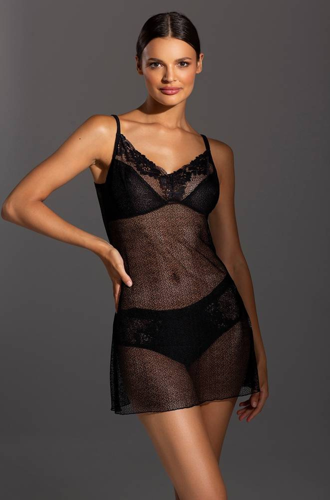 Komplet wykonany z delikatnie prześwitującej siateczki.