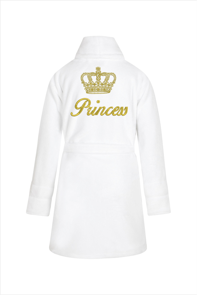 Szlafrok dziecięcy polarowy Princess + korona ByShelly - biały/złoty