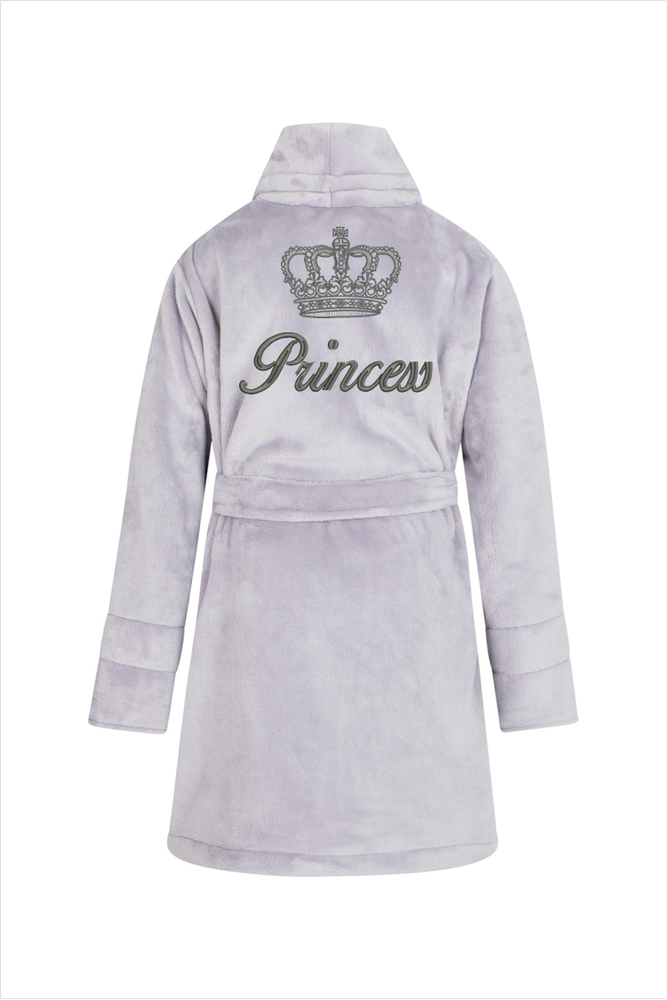 Szlafrok dziecięcy polarowy Princess + korona ByShelly - szaary/srebrny