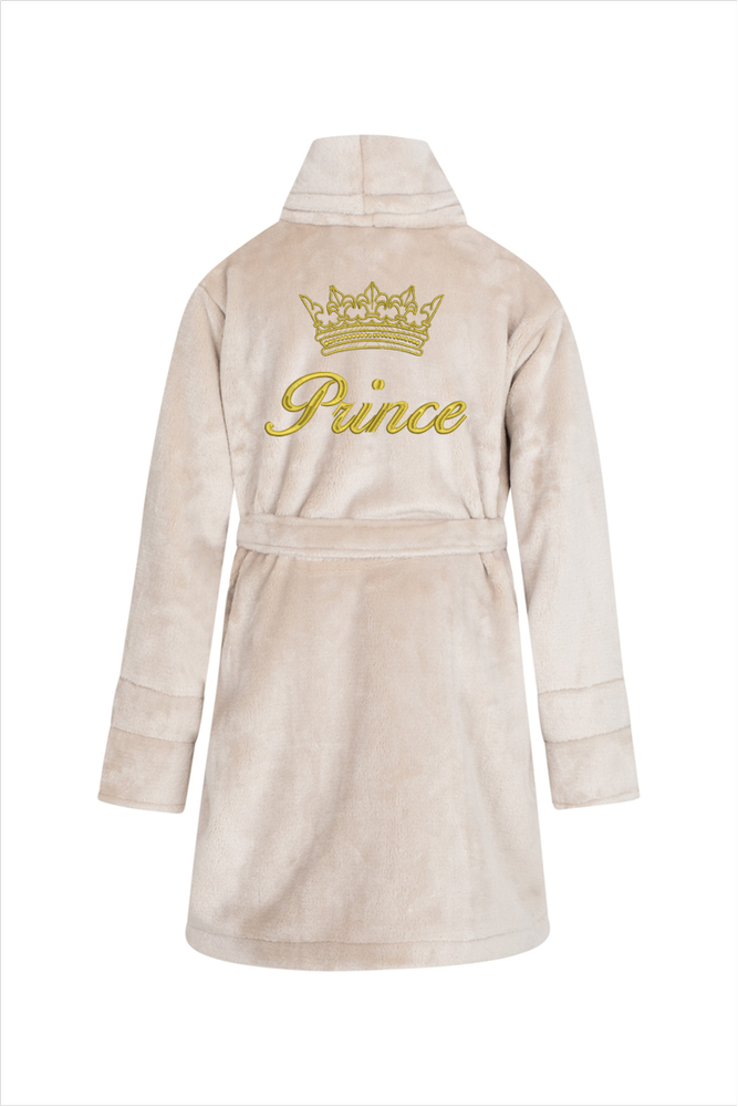 Szlafrok dziecięcy polarowy Prince + korona ByShelly - beżowy/złoty
