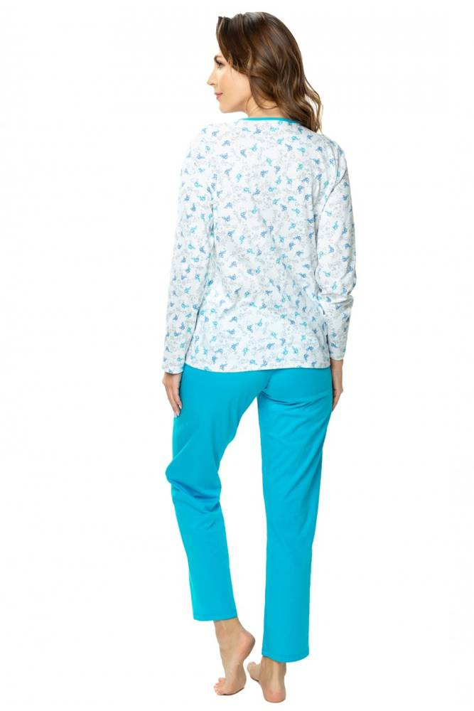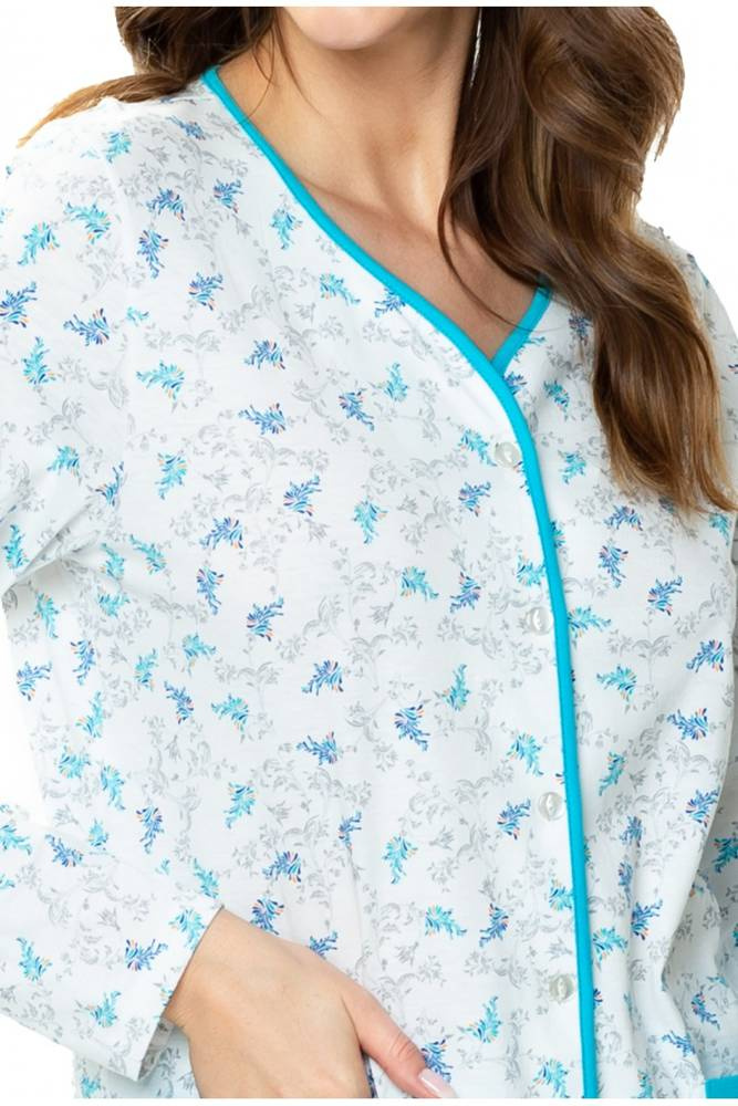 Piżama damska 86566 Anna rozpinana Mewa - biały-turkus