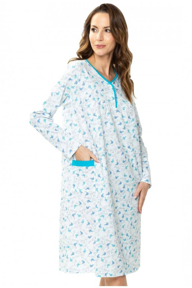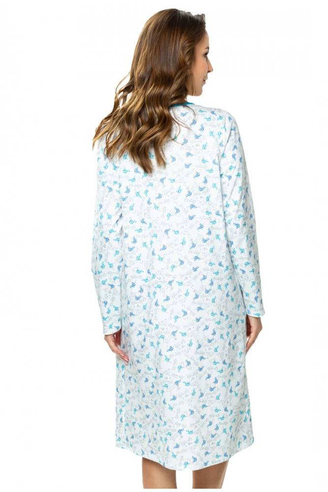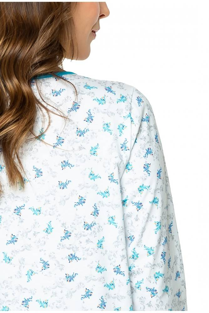 Koszula nocna 86565 Anna z rozpinanym dekoltem Mewa biały-turkus