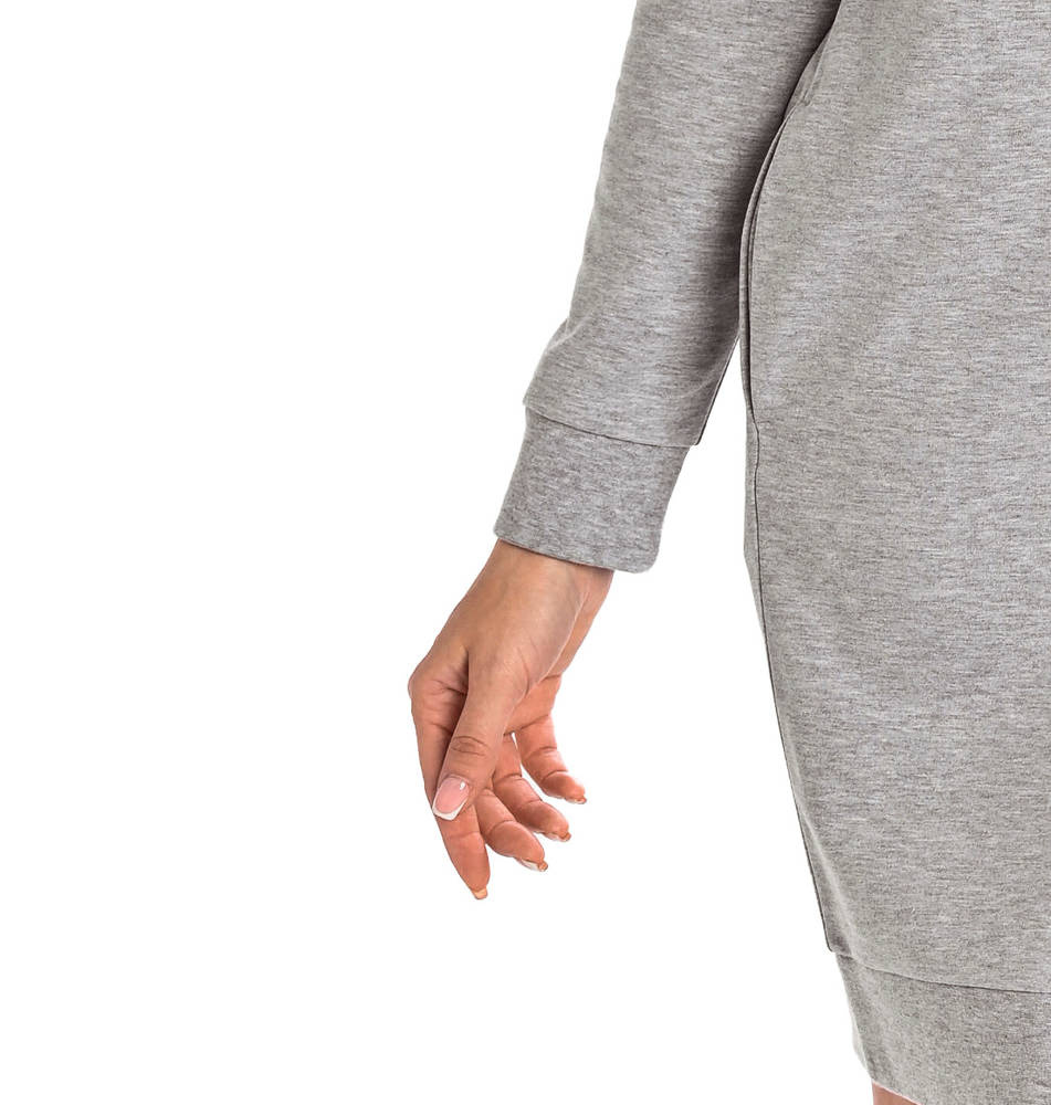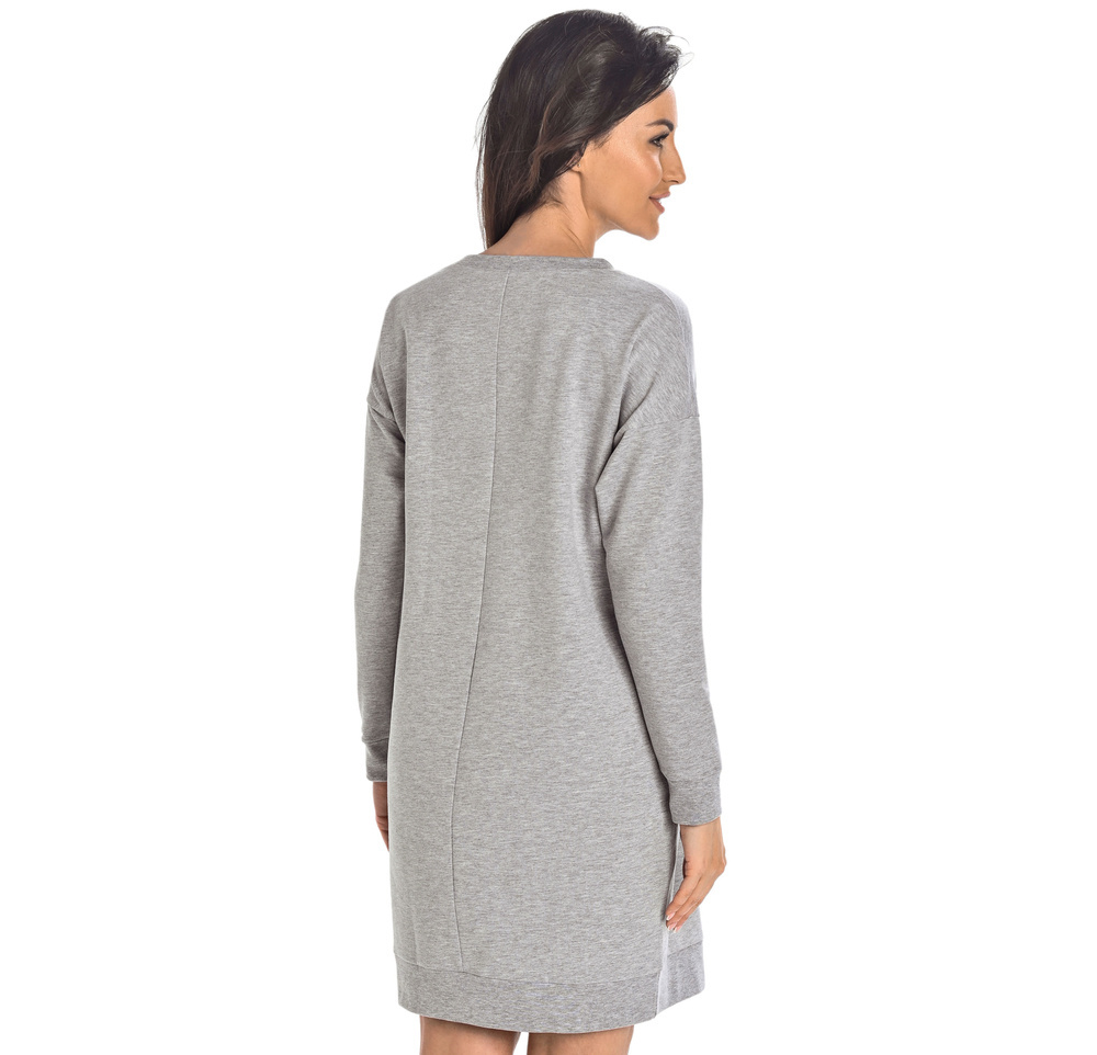 - Dołem i na rękawie sukienka posiada szerszy ściągacz