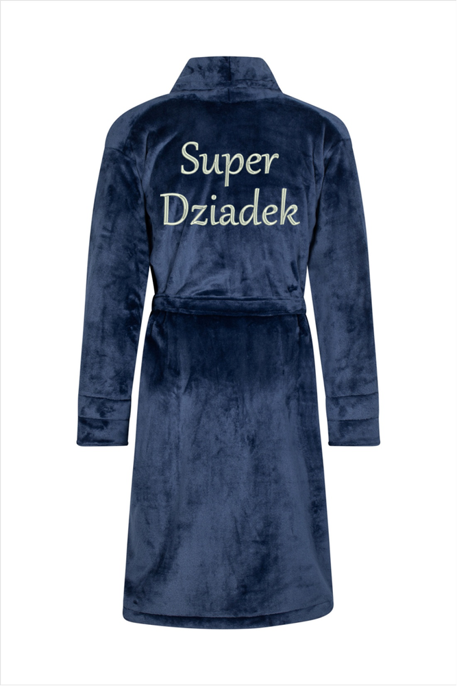 Szlafrok męski Super Dziadek ByShelly - granatowy/srebrny