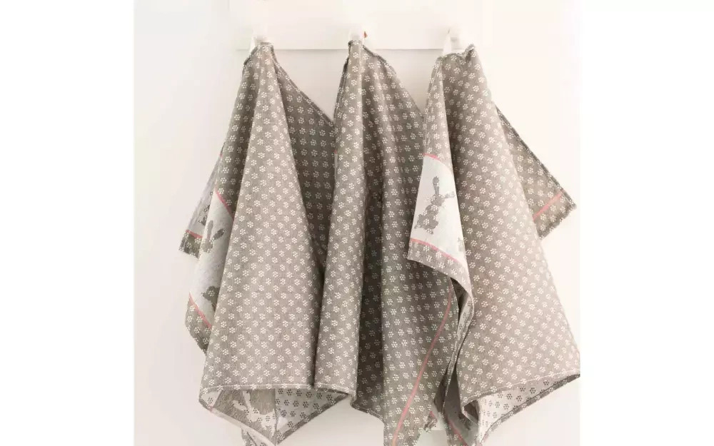 Komplet ścierek kuchennych zapakowanych w pudełko. Zestaw o tym samym motywie wzorniczym i spójnej kolorystyce. Ścierka to produkt utkany techniką żakardu z przędzy bawełnianej, klasycznej, o doskonałej chłonności. Ręcznik to wyrób o splocie waflowym z bordiurą żakardową o wzorze i kolorze skoordynowanym ze ścierką. Wyjątkowa wodochłonność. Bardzo dobra trwałość. Komplet kuchenny, to doskonały pomysł na prezent lub mały upominek na każdą okazję.