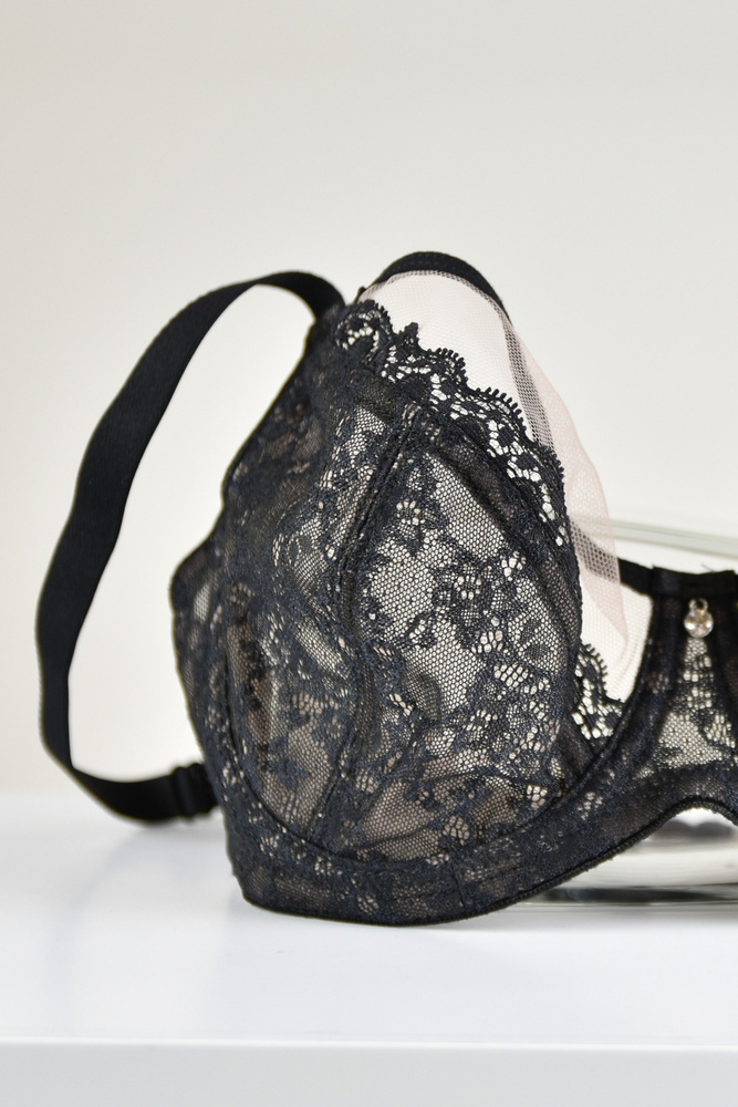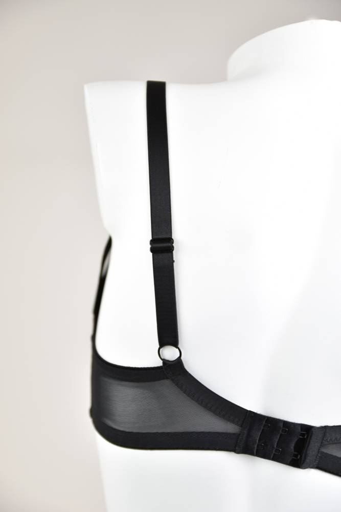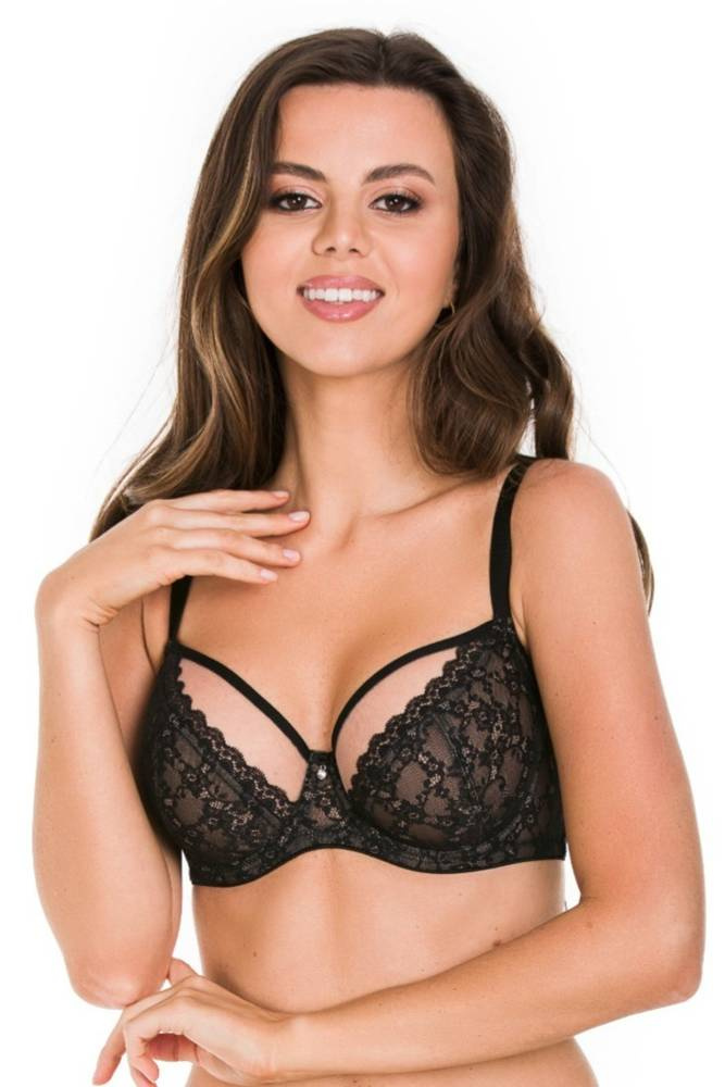Biustonosz miękki idealnie zbierający piersi. Konstrukcja jednocześnie stabilna i lekka. Boczki wykonane ze stabilnego materiału, wzmocnione boczną fiszbiną