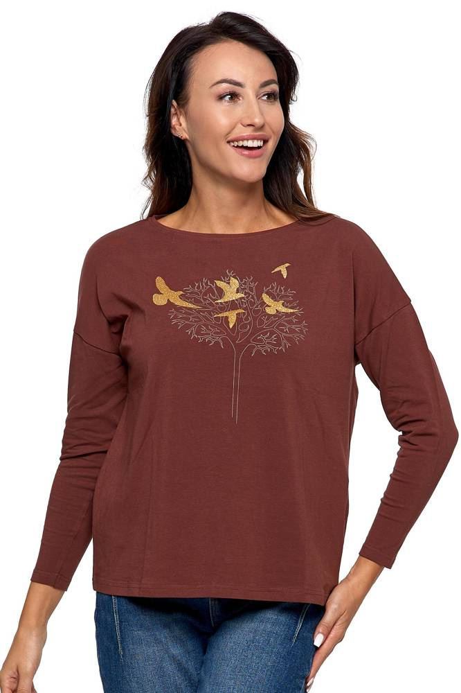 Bluzka damska z długim rękawem i delikatnym nadrukiem.