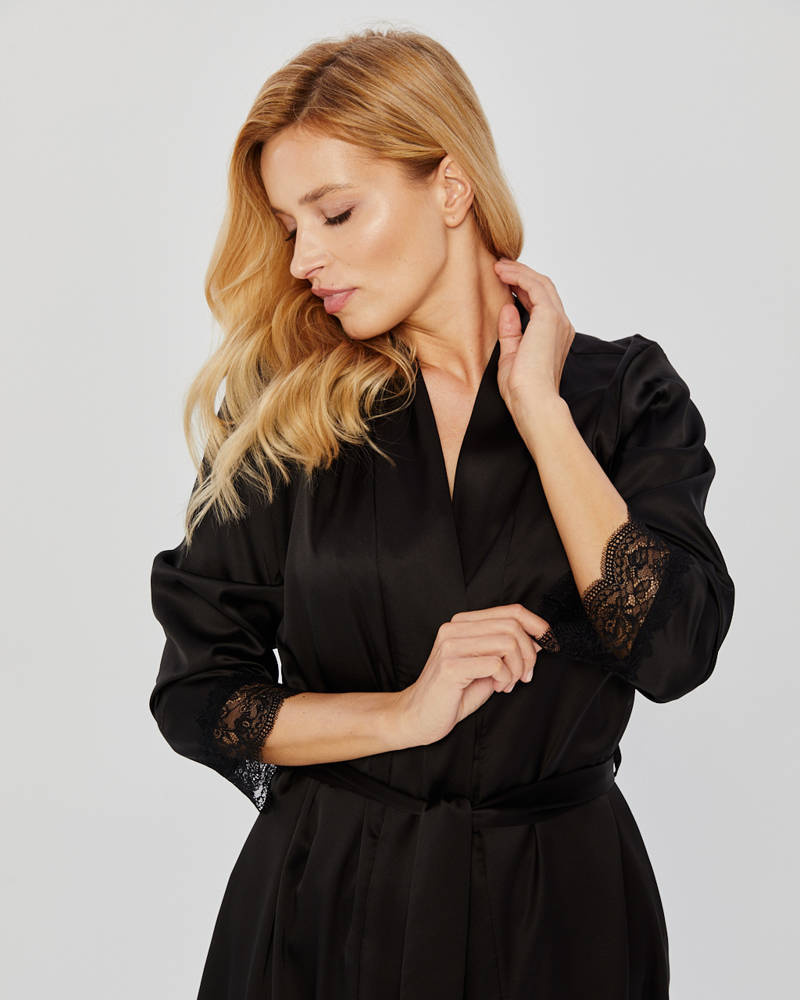 Szlafrok satynowy z koronką Mona black