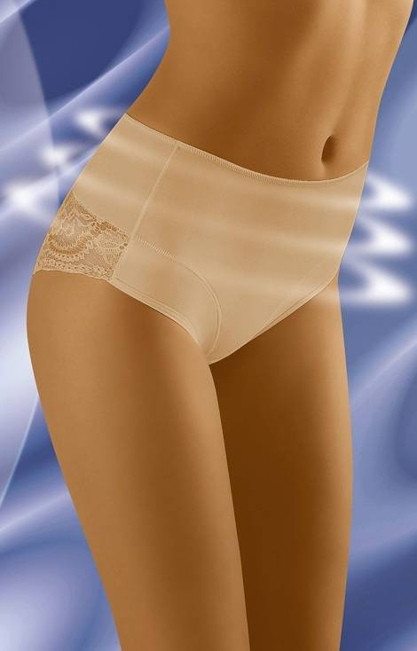 Figi damskie modelujące sylwetkę. Tył ozdobiony koronką. Wysokie, zabudowane na biodrach.