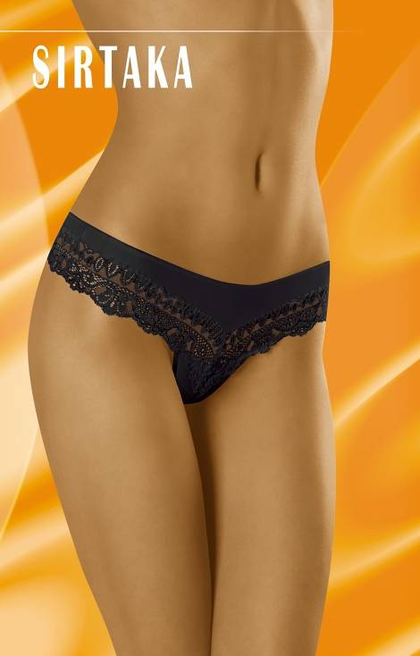 Stringi damskie wykonane z mikrofibry. Ozdobione efektowną koronką.