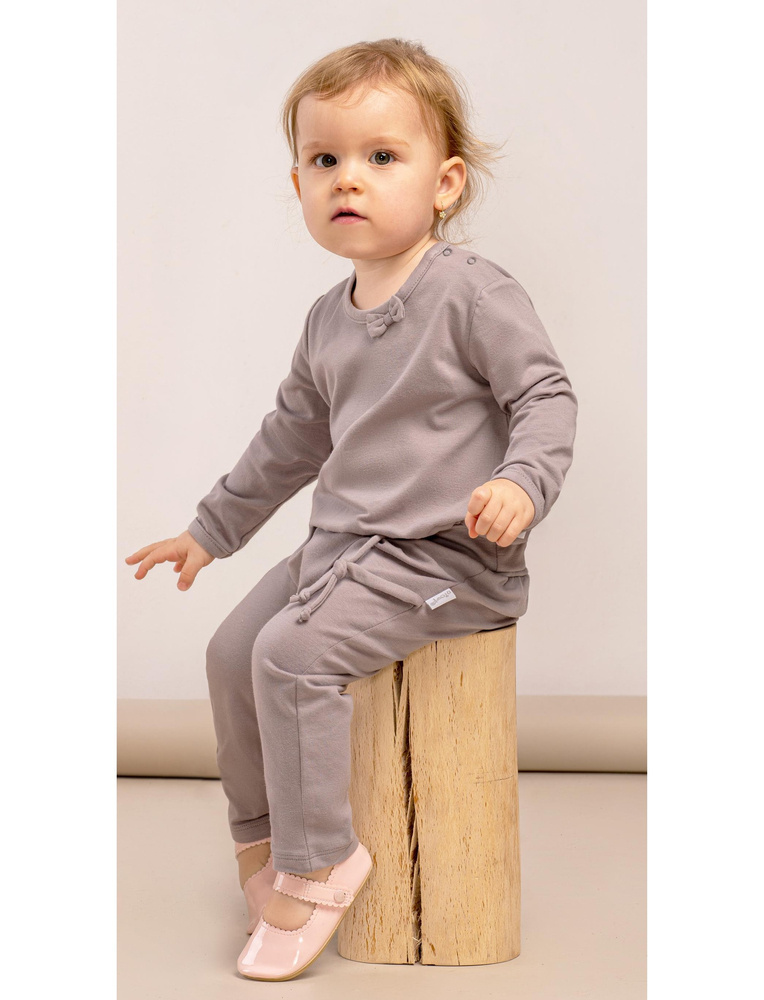 Spodnie dziecięce z ozdobnym wiązaniem. Wygodny, nieuciskający ściągacz w pasie, utrzymuje spodenki na odpowiednim miejscu, w każdej sytuacji. Świetnie sprawdzą się w domu, na spacerze i podczas wyjazdów. Anatomiczny krój sprawia, że nie krępują ruchów dziecka podczas nauki raczkowania czy chodzenia. Warto o nich pamiętać kompletując wyprawkę dla maluszka. Spodnie stworzą ciekawe zestawy z pozostałymi ubrankami z kolekcji Sara.