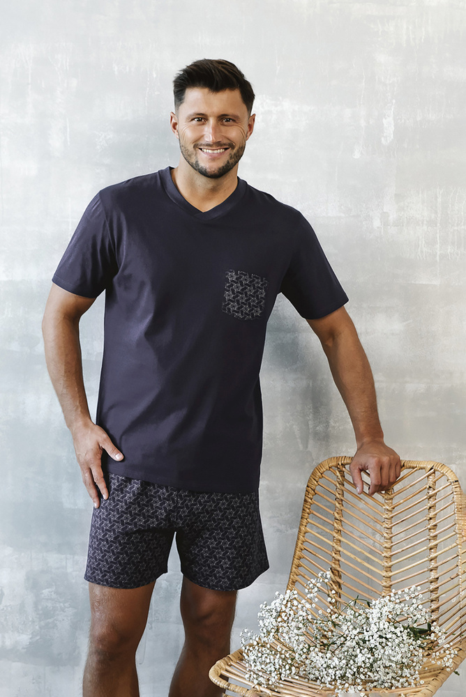 Piżama Męska krótki rękaw, spodenki Diaz Italian Fashion - granatowy/druk