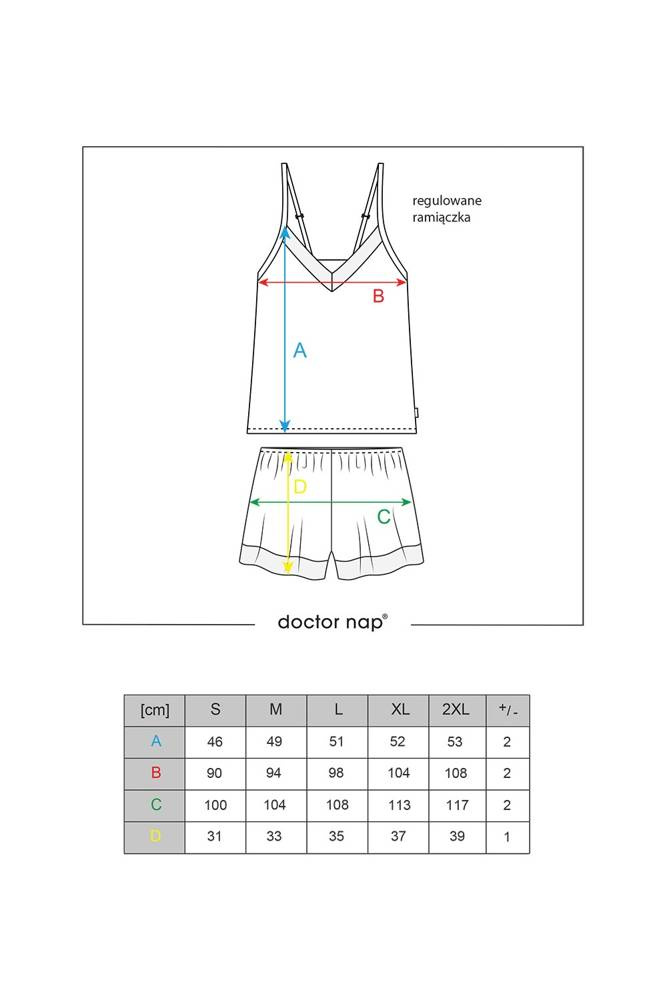 Wygodne i komfortowe piżamy nie muszą być nudne! Ciekawe wzornictwo i kolorystyka są niewątpliwą zaletą. Model z wysokiej jakości, miłej w dotyku wiskozy. Bluzka na regulowanych, wąskich ramiączkach. Spodnie krótkie, wzorzyste, wykończone komfortową gumką w pasie. Bardzo wygodny fason, delikatnie dopasowany do ciała. Spodoba się kobietom, które uwielbiają delikatność i swobodę.