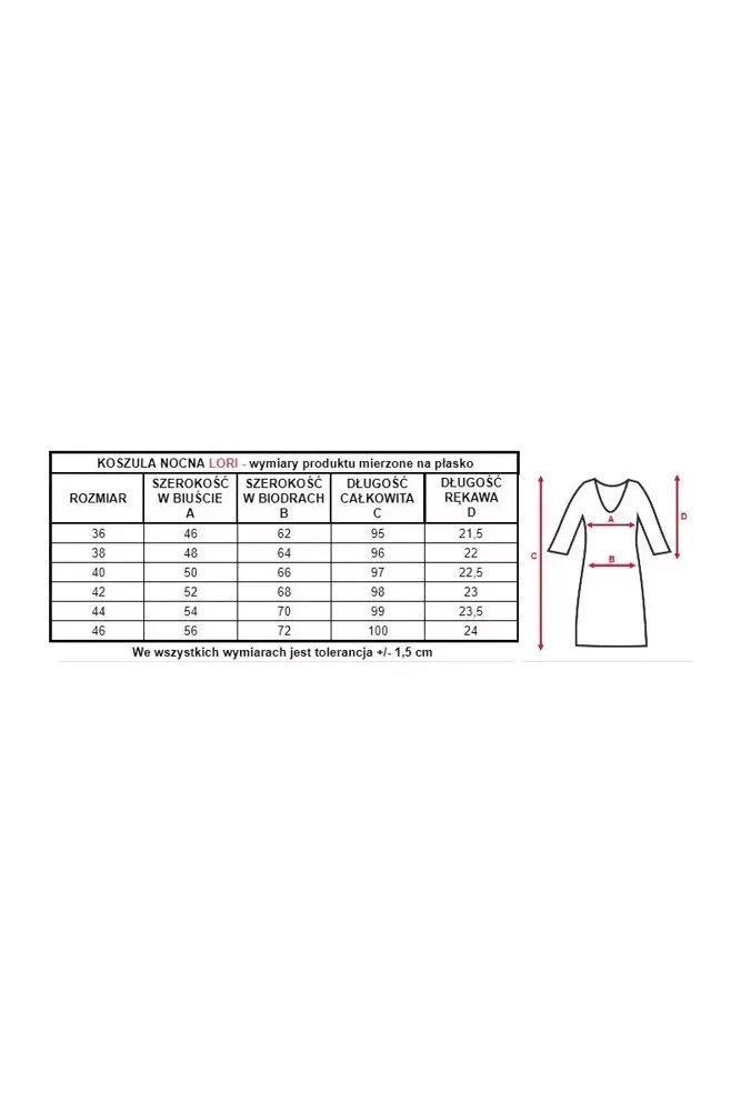 Koszulka wykonana z miłej i przyjemnej dla ciała wiskozy. Marszczona pod biustem, od wewnętrznej strony wygodna gumka, która idealnie podtrzymuje biust.  Koszulka może być używana przez kobiety w ciąży, sprzyja temu rozszerzany fason, jak również przez mamy karmiące.  Dzięki eleganckiemu i zarazem praktycznemu designowi sprawdzi się także w szpitalu. Po okresie ciąży posłuży jako kobieca i zmysłowa koszula nocna do spania dla młodej mamy.