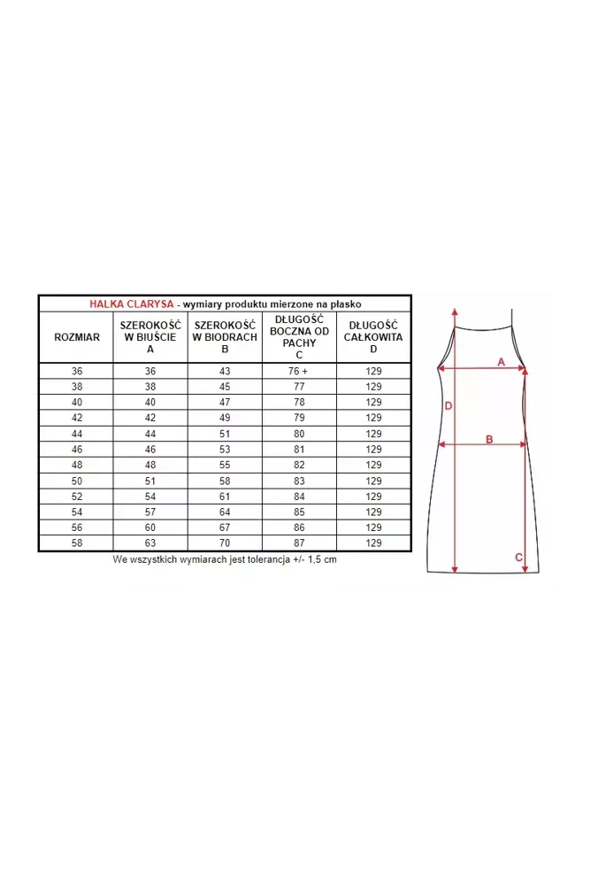 Halka ma niestandardową długość za kolano. Posiada cięcia francuskie, które pozwalają na idealne dopasowanie do krągłości naszego ciała. Jedwab wiskozowy VISTEX, z którego uszyto piżamkę jest teromaktwny, higroskopijny oraz antybakteryjny. Dzianina ta jest hipoalergiczna, dlatego jest świetnym wyborem dla alergików i osób o wrażliwej skórze. Jedwab wiskozowy składa się z 72% wiskozy, 28% poliamidu.
