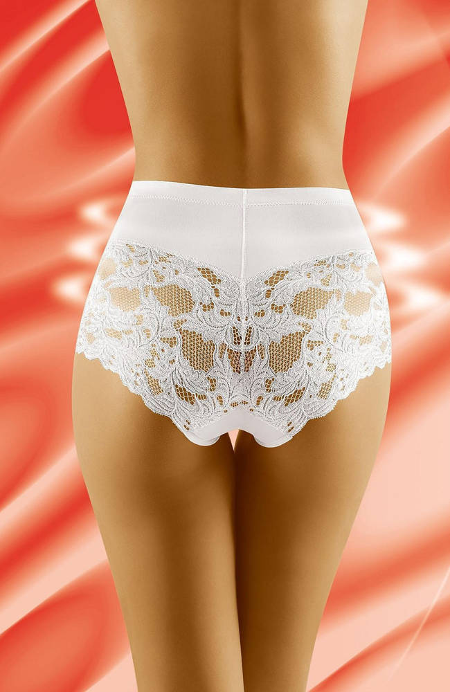 Figi damskie modelujące sylwetkę - opinają brzuch, podkreślają linię talii. Wykonane z gładkiej mikrofibry i efektownej ażurowej koronki. Przyjemne w dotyku i bardzo wygodne.