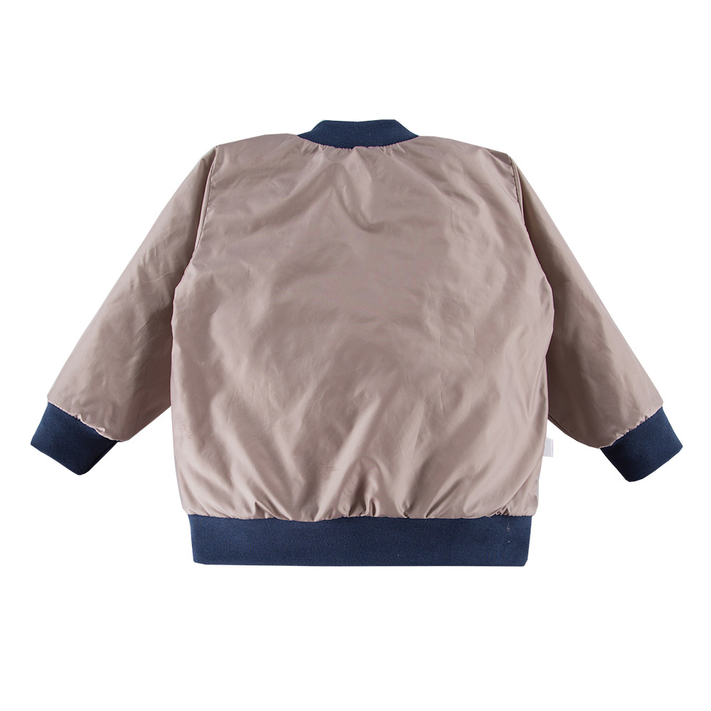 Dziecięca kurtka bomberka z kolekcji Pacific uszyta z tkaniny przeciwwiatrowej, posiada bawełnianą podszewkę. Tkanina chroni maluszka przed wiatrem, a bawełniana mięciutka podszewka zapewnia wygodę oraz komfort podczas noszenia.