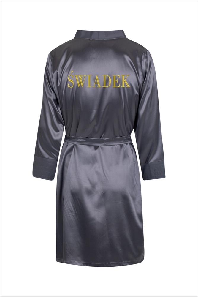 Szlafrok męski satynowy Świadek ByShelly - grafitowy/złoty