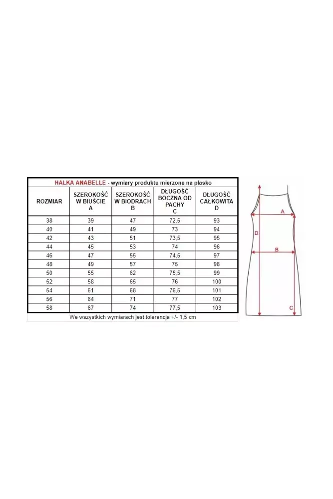 Halka Anabelle została wykonana z jedwabiu wiskozowego. Jedwab wiskozowy VISTEX, z którego uszyto piżamkę jest teromaktwny, higroskopijny oraz antybakteryjny. Dzianina ta jest hipoalergiczna, dlatego jest świetnym wyborem dla alergików i osób o wrażliwej skórze. Jedwab wiskozowy składa się z 72% wiskozy, 28% poliamidu.