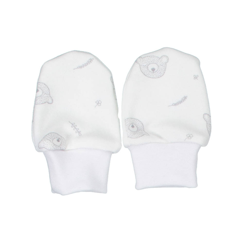 Bawełniane rękawiczki, które zapewniają maluchowi ochronę przed zadrapaniem. Idealne od urodzenia. Szeroki ściągacz utrzymuje je w odpowiednim miejscu, ale nie uciska. To niezbędny element każdej niemowlęcej wyprawki.