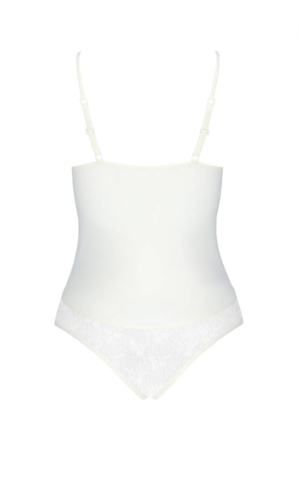 Wyjątkowe body wykonane z delikatnej kremowej mikrofibry oraz eleganckiego plenu.