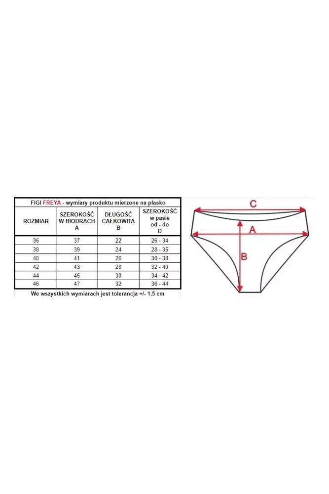 Klasyczne figi wzbogacone o delikatną, haftowaną koronkę, która nadaje niepowtarzalnego uroku i elegancji. Majtki wykonane z dzianiny wiskozowej o właściwościach zdrowotnych.