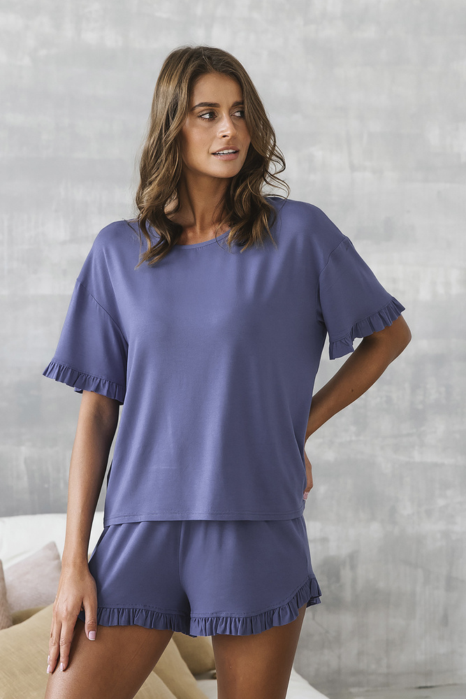 Piżama Damska krótki rękaw, spodenki Styl Italian Fashion - niebieski