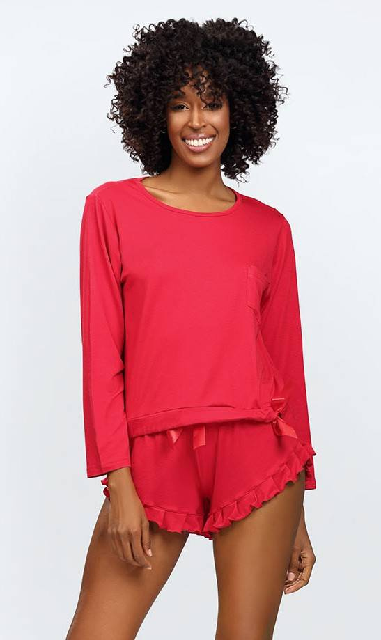 Komplet Piżama Damska Ronnie DKaren - czerwony