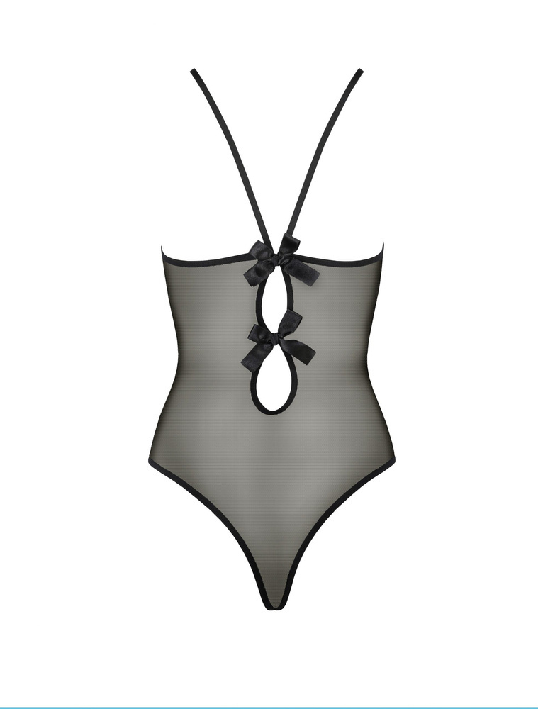 Zmysłowe body wykonane z materiałów najwyżej jakości. Niesamowicie seksowny tiulowy materiał, subtelne koronkowe zdobienia oraz paseczki zmysłowo opinające się na biuście oraz biodrach tworzą elegancką całość.