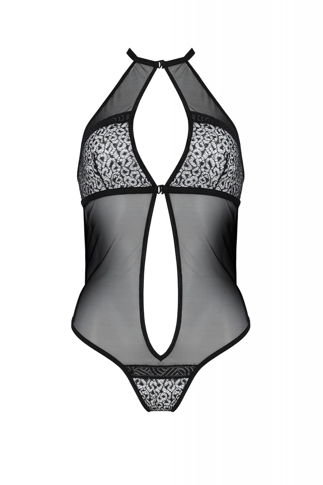 Wykonane zostało z elastycznego tiulu, który wspaniale opina sylwetkę, podkreślając jej krągłości. Przód ozdobiony koronkowymi wstawkami, które prezentują się niesamowicie kobieco.