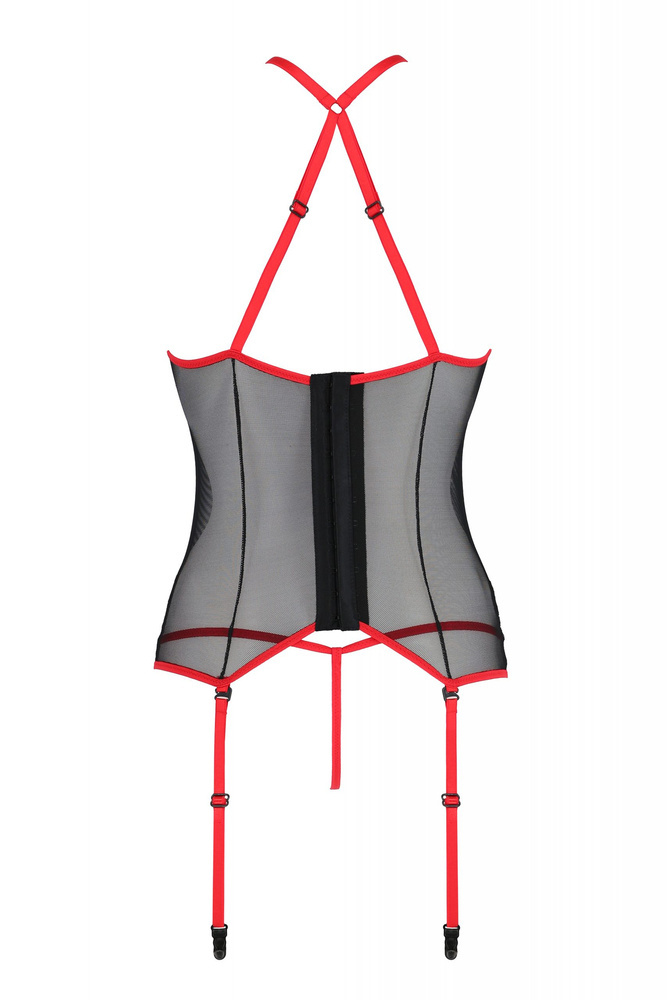Rozkwitniesz na widok tego gorsetu na sobie. Satara gorset zapewni Ci mnóstwo przyjemności! Ma nie tylko super kobiecy fason, ale również koronkę, która kusząco zgrywa się z delikatnym tiulem. Komplet dostępny w kolorze czarnym oraz czerwonym.