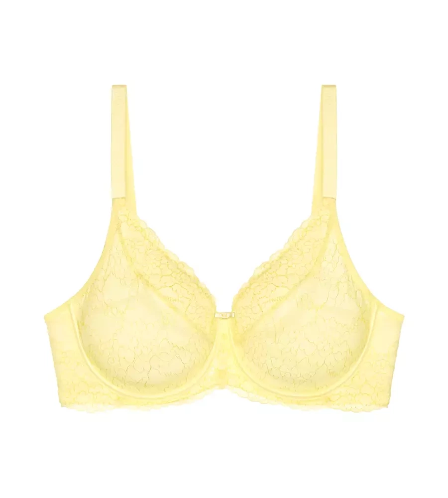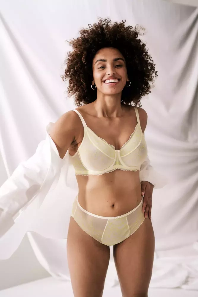 Koronkowy, elegancki biustonosz z lekko usztywnianymi miseczkami z fiszbinami. Dzięki miseczkom typu minimizer model ten optycznie zmniejsza biust o jeden rozmiar miseczki.