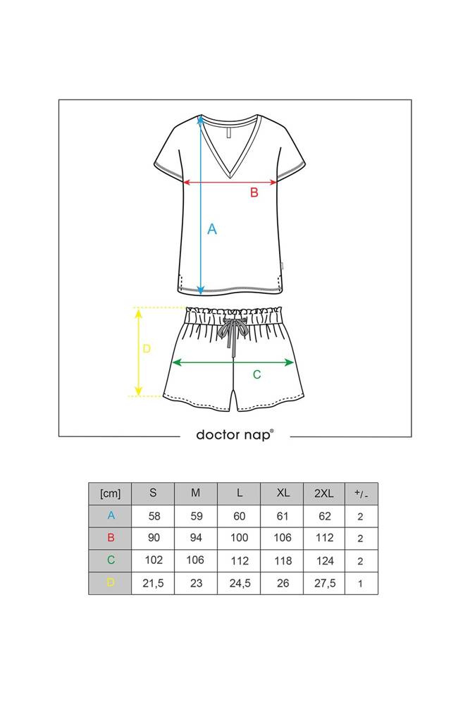 Wygodne i komfortowe piżamy nie muszą być nudne! Ciekawe wzornictwo i kolorystyka są niewątpliwą zaletą. Model z wysokiej jakości, miłej w dotyku bawełny. Dekolt typu V, bluzka jednolita. Spodnie krótkie, wzorzyste, wykończone komfortową gumką w pasie. Bardzo wygodny fason, delikatnie dopasowany do ciała. Spodoba się kobietom, które uwielbiają delikatność i swobodę.