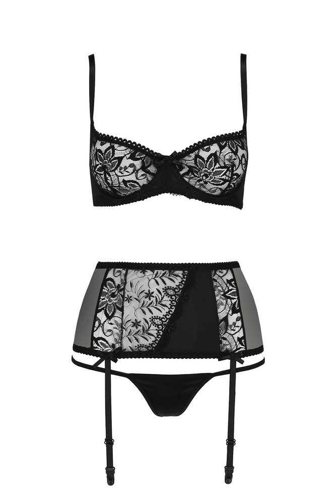 Trzyczęściowy komplet marki CASMIR wykonany z elastycznej satyny oraz delikatnego haftu.