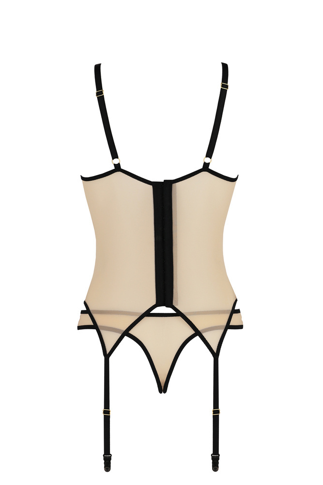 Gorset podkreśla kobiecą figurę, a dołączone do gorsetu stringi idealnie dopełniają całość bielizny jednocześnie podkreślając jej nietypowy, wyjątkowo seksowny charakter.
