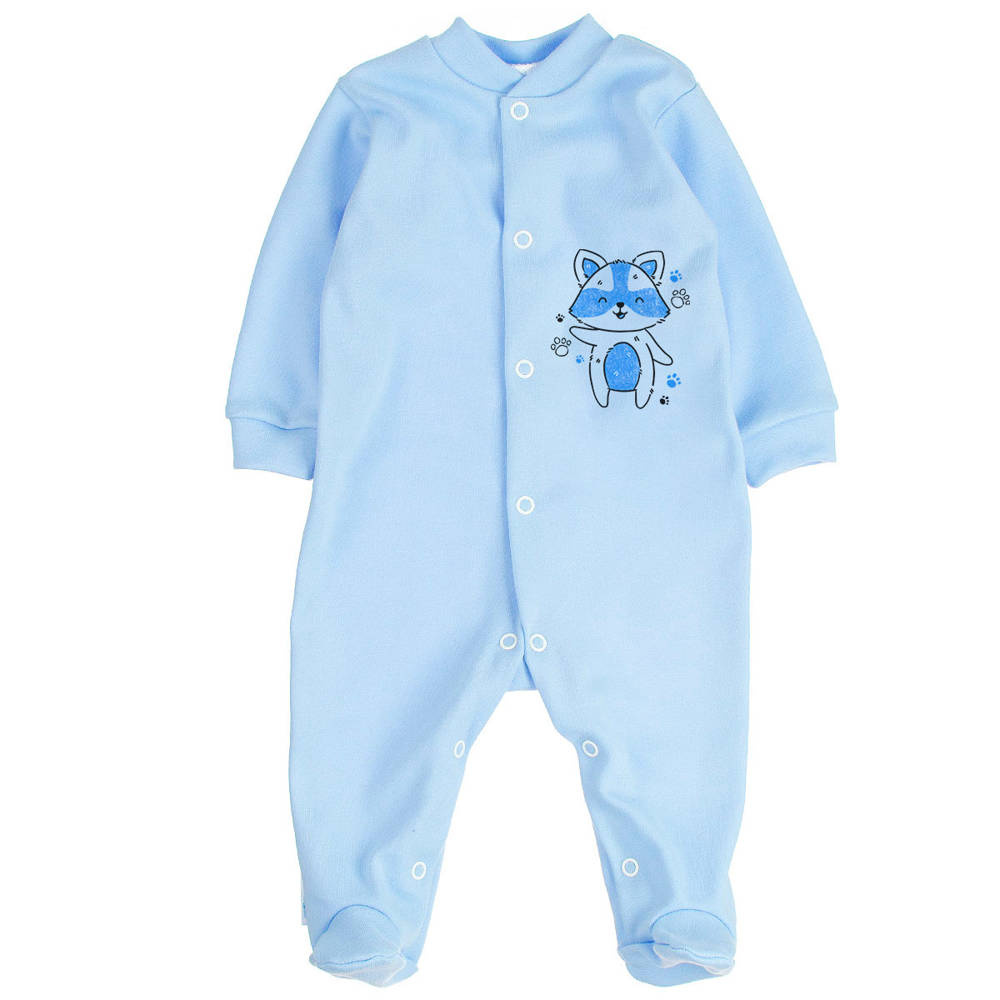 Pajacyk wykonany z 100% bawełny. Zapinany na napki co ułatwia ubieranie dziecka. Rękawki zakończone mankiecikiem. Zdobiony nadrukiem.