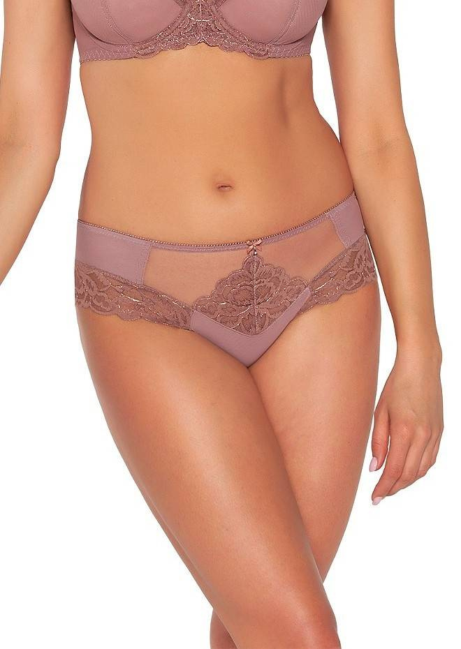 Pełne uroku, kobiece figi  wykonane z  delikatnej, elastycznej siateczki w połączeniu koronką