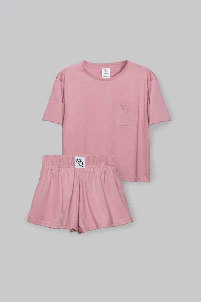 Model z oversizową, wygodną koszulką oraz krótkimi spodenkami podkreślającymi nogi. Spodenki mają nieco wyższy stan oraz szeroką gumę w pasie. Wykonana z niezwykle delikatnej i przewiewnej bawełny, zapewniającej komfort podczas snu.