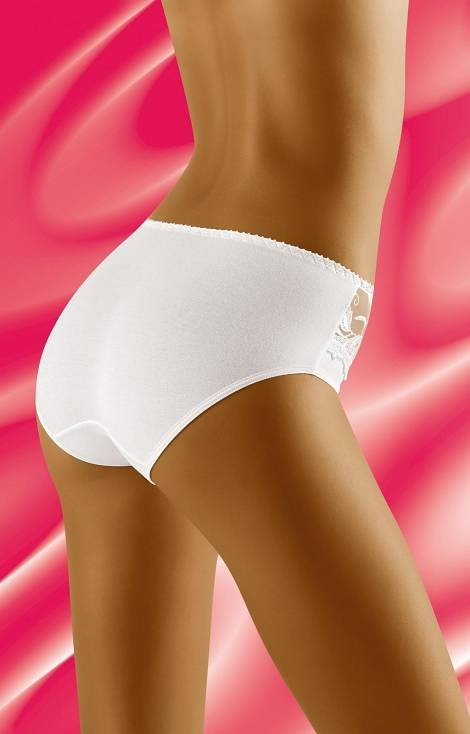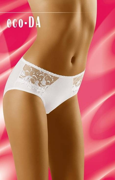 Klasyczne figi damskie uszyte z wysokiej jakości bawełny. Przód z tiulowymi wstawkami, tył jednolity.