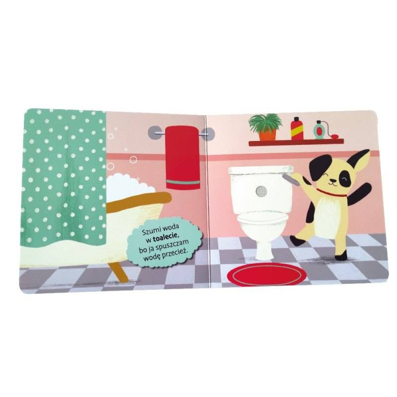 Książeczka z dźwiękami. Wspiera wszechstronny rozwój dziecka – pobudza zmysły wzroku, słuchu o dotyku, rozwija wyobraźnię. Zawiera krótkie zabawne wierszyki dotyczące zwierzątek. Książka zapoznaje małych czytelników ze zwierzątkami domowymi. Wyróżnikiem publikacji są dźwięki. Dzięki niej maluch dowie się, jakie dźwięki wydają budzik, pralka, dzwonek do drzwi, aparat fotograficzny, oraz jaki jest odgłos mycia zębów czy wody spuszczanej w toalecie.