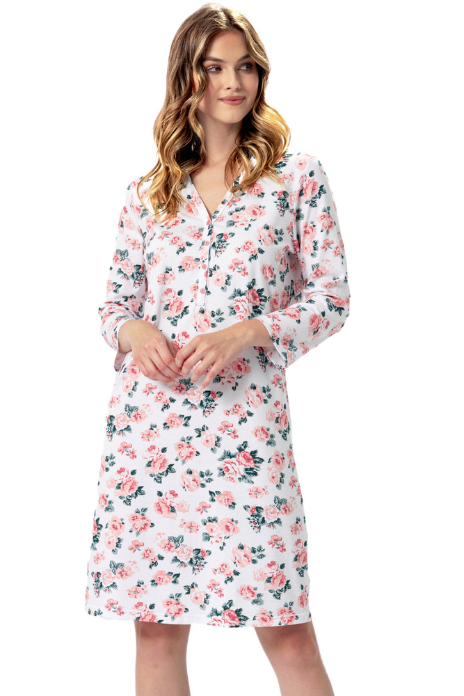 Koszula damska z rękawem 7/8 uszyta z wysokiej jakości bawełny. Długość koszuli do kolan, dekolt w serek.