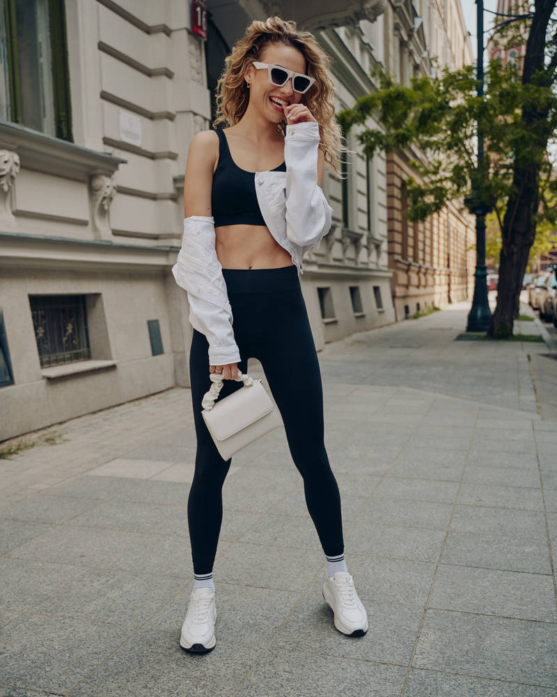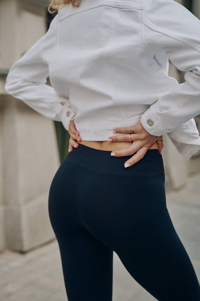 Wyjątkowe legginsy. Materiał nie prześwituje. Odpowiednio opinają talię, spłaszczając optycznie i podtrzymując brzuch. Dopasowana nogawka nie ściąga się i nie marszczy, a elastyczna gumka w pasie zapewnia wygodę noszenia legginsów z wysokim stanem i utrzymuje je na właściwym miejscu.