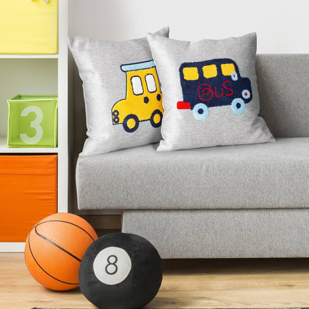 Poszewka wykonana z przyjemnego materiału. Poszewka ALVIN 1 z samochodem haftowanym puszystą nicią znakomicie ożywia wnętrze pokoju dziecięcego. Żółty samochodzik wyróżnia się na tle szarej, melanżowej tkaniny z lekkim połyskiem.