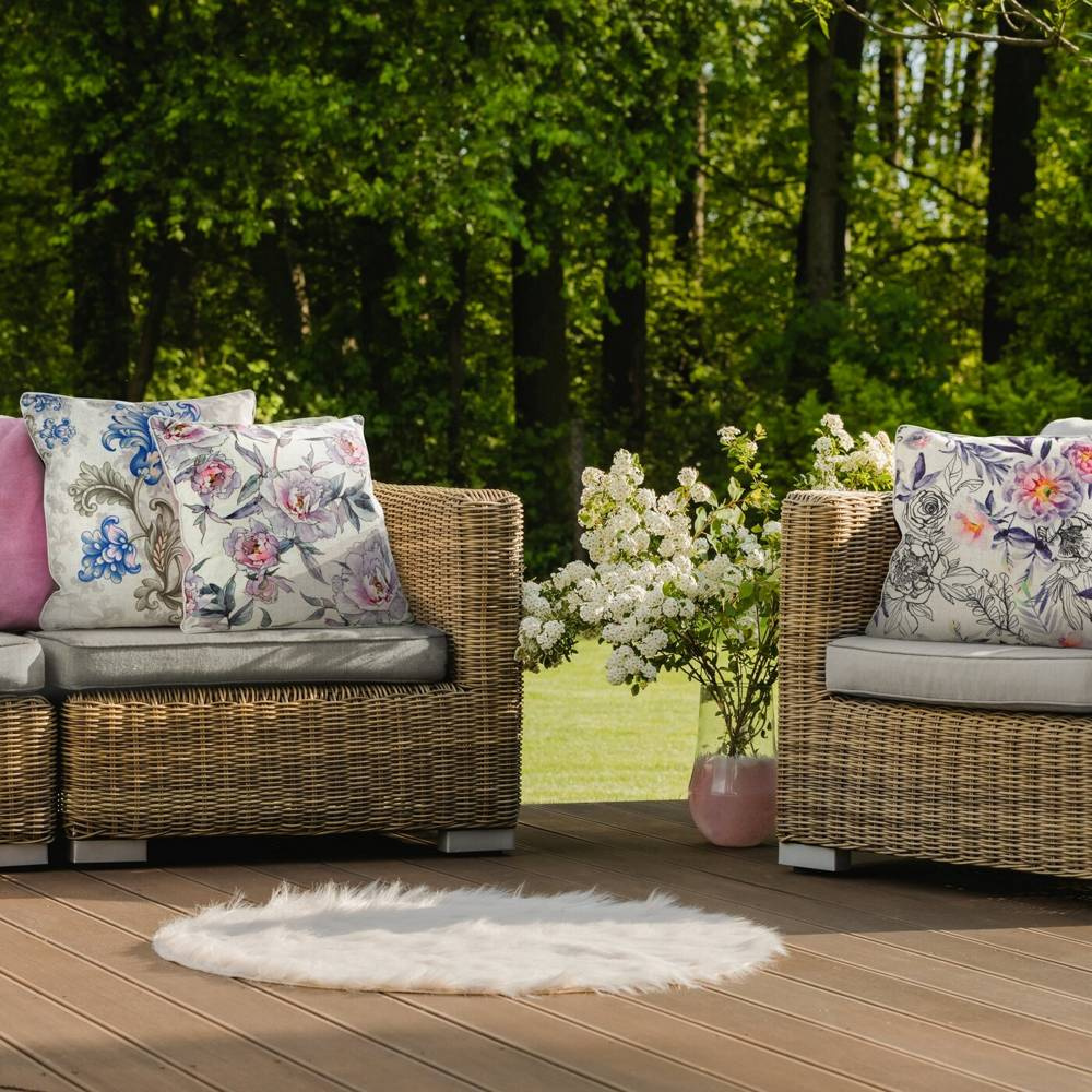 Poszewka wykonana z przyjemnego materiału. Modna tkanina, z której wykonano poszewkę jest mieszanką lnu, bawełny i poliestru, a jej wierzch zdobi kwiatowy nadruk.