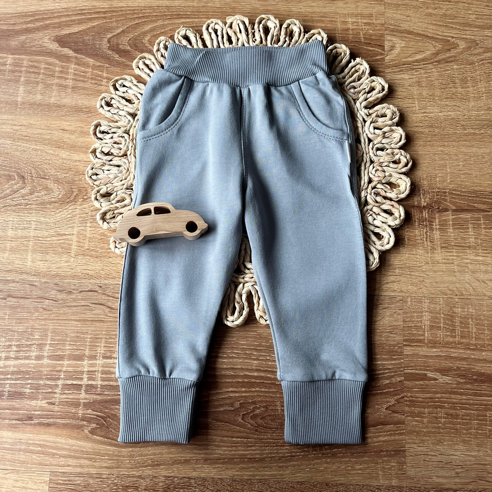 Spodnie z przyjemnego w dotyku materiału, ich odpowiedni krój gwarantuje swobodę ruchu, a gumka w pasie zapewnia komfort i stabilizację na ciele dziecka.