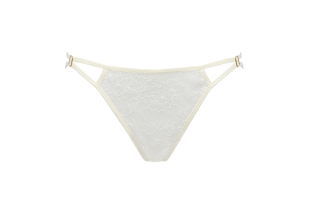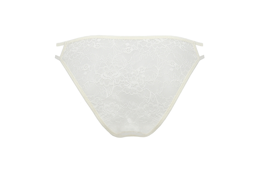Figi damskie wykonane z delikatnej, prześwitującej koronki.