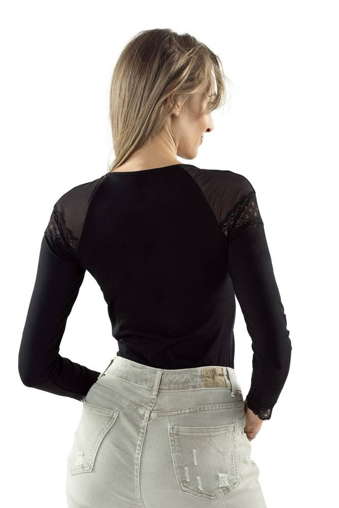 Elegancka bluzka damska wykonana z wysokiej jakości bawełny. Dekolt i ramiona z tiulu z ozdobną koronką