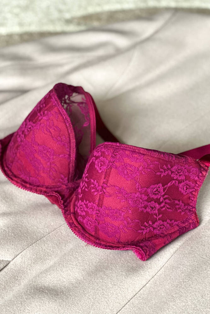 Dolna część miseczki usztywniana, gładka, pokryta mikrofibrą. Górna część miseczki wykonana z pięknej koronki .